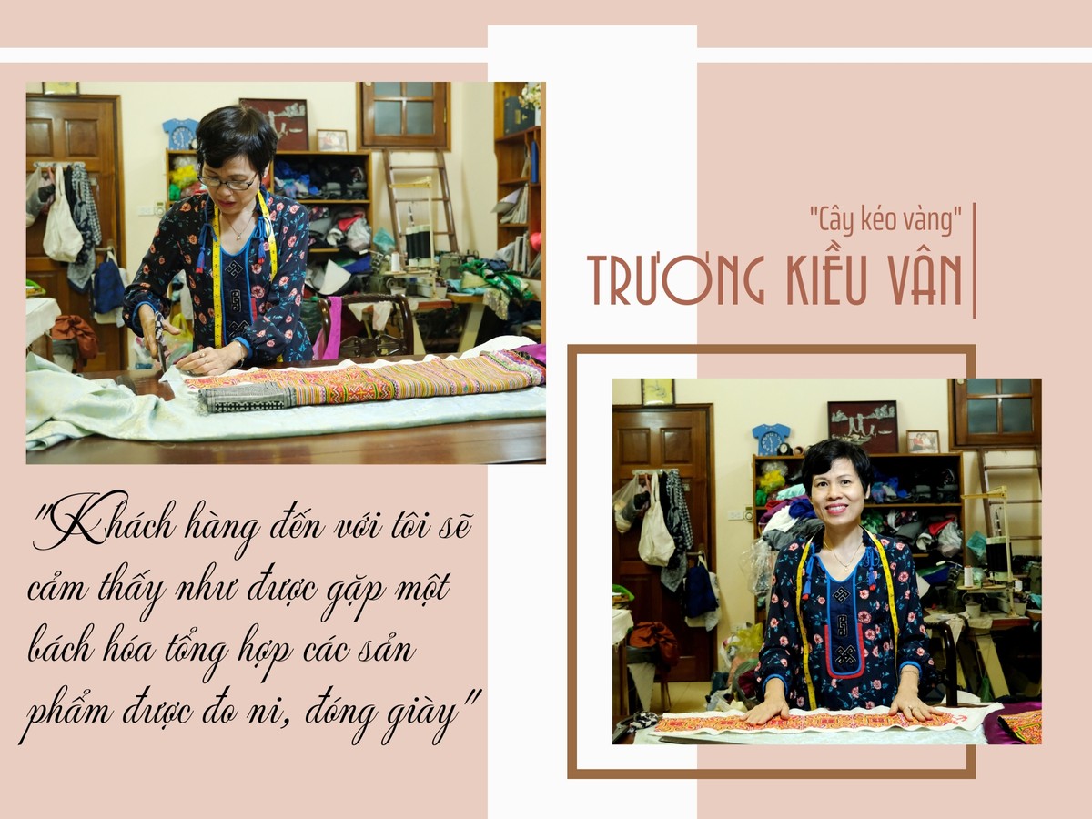 Điều đặc biệt nữa khiến thời trang Vân có hấp lực như thỏi nam châm hút khách hàng là bởi, thông thường một người thợ may sẽ chuyên về dòng thời trang nào đó như: áo dài, complete, váy cưới, trang phục dạ hội, quần áo trẻ em…, nhưng “cây kéo vàng” Trương Kiều Vân nhận may tất cả mọi loại trang phục. Các gia đình người nước ngoài đến với bà sẽ được may đo từ A - Z, cả trang phục cho người già đến trẻ sơ sinh, thậm chí cả trang phục thú cưng.
