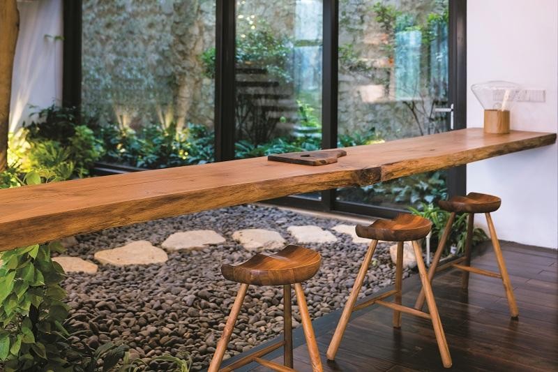 Buồn hơn là việc khai thác gỗ rừng nguyên sinh vô tội vạ, đi ngược với sự phát triển của tự nhiên. Bởi thế, năm 2008, tôi quyết định rẽ hướng, dừng công việc làm theo đơn đặt hàng, vẫn giữ nghề thiết kế kiến trúc song song với xây dựng và phát triển nghề mộc nhưng theo tư duy bền vững.