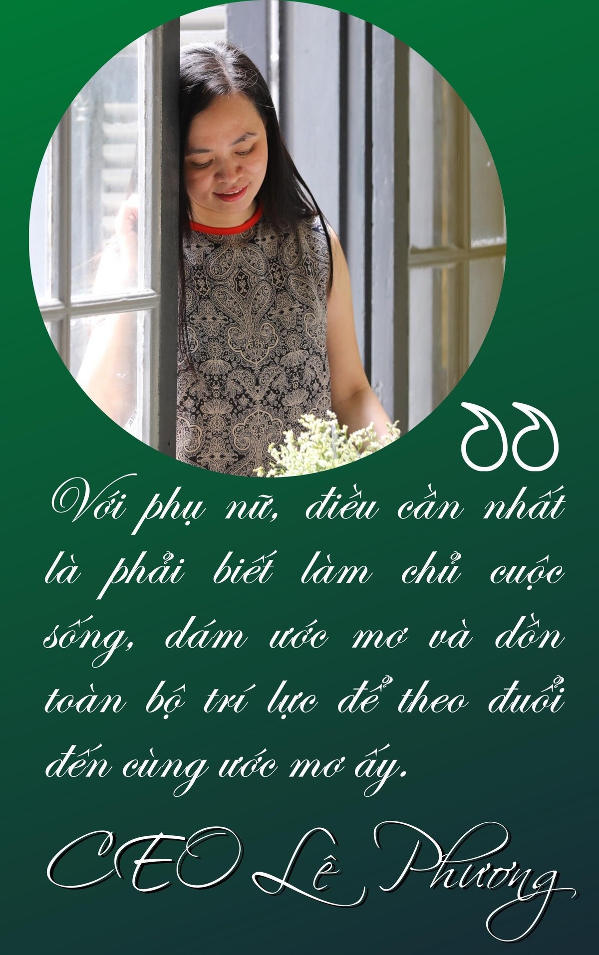 Khi được hỏi điều gì là quan trọng nhất với các nữ doanh nhân, CEO Lê Phương trải lòng, với chị điều cần nhất là phải biết làm chủ cuộc sống, dám ước mơ và dồn toàn bộ trí lực để theo đuổi đến cùng ước mơ ấy. Và người phụ nữ sẽ thăng hoa cả trong cuộc sống và sự nghiệp, khi được người bạn đời luôn ủng hộ và khích lệ, khi đó ngày nào cũng là 8/3 với họ.