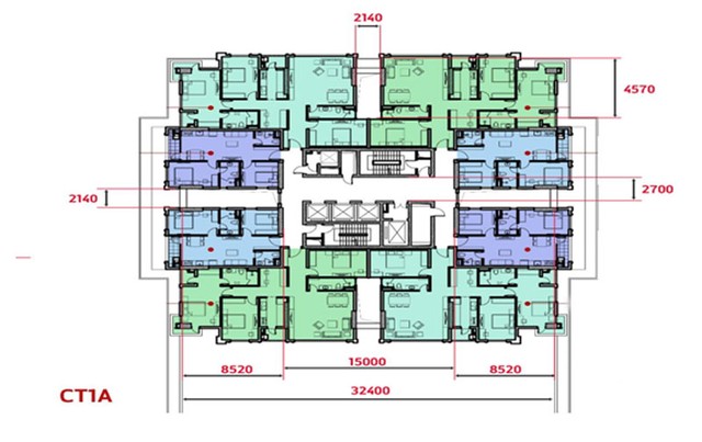 Chưa hết, việc tối ưu trong thiết kế còn được thể hiện từ cửa căn hộ đến khu vực thang máy rất gần, tối đa cũng chỉ là 9m để đến thang máy gần nhất, đảm bảo cư dân khi di chuyển giao thông theo trục ngang được nhanh chóng, rút ngắn khoảng cách và thời gian di chuyển từ căn hộ đến thang máy.