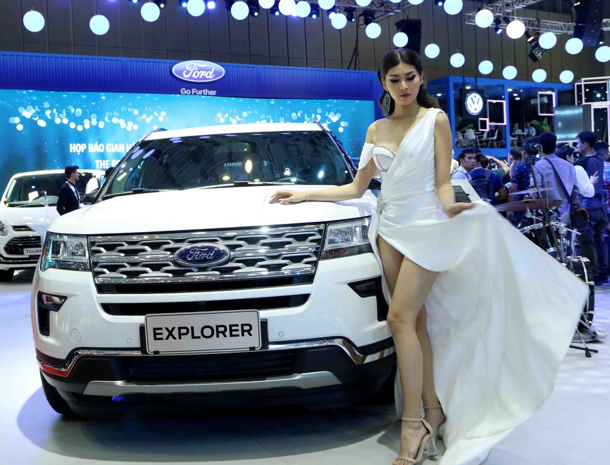 Mẫu Tây khoe dáng bên xe Ford.