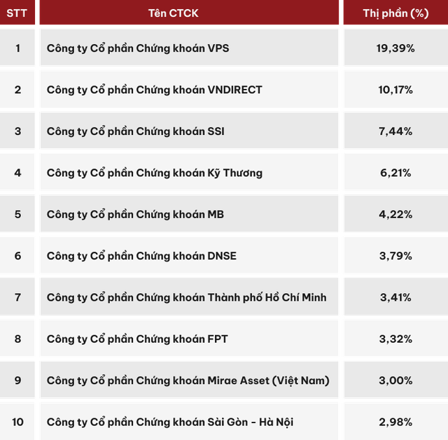 Theo đó, trong quý II/2022, Chứng khoán DNSE chiếm thị phần môi giới cổ phiếu HNX là 3,79%, xếp ngay sau những cái tên quen thuộc trên thị trường, gồm Chứng khoán VPS, VNDirect, SSI, TCBS, MBS và vượt lên trên HSC (Chứng khoán TP. Hồ Chí Minh), Chứng khoán FPT, Mirae Asset (Việt Nam) và Chứng khoán Sài Gòn Hà Nội (SHS).