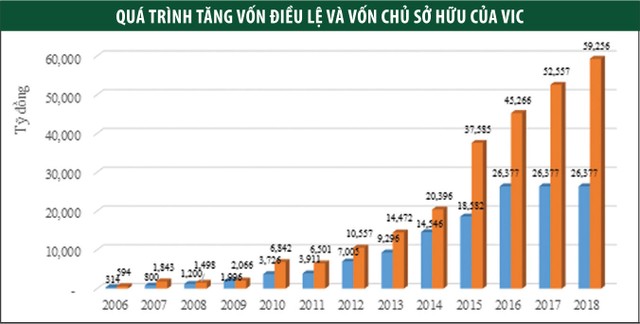 Hiện vốn điều lệ của VIC đạt 26.377 tỷ đồng, tăng 134,5 lần so với ngày đầu thành lập và trở thành doanh nghiệp niêm yết có giá trị vốn hóa lớn nhất TTCK Việt Nam. Giá cổ phiếu VIC (sau điều chỉnh) ngày 21/5/2018 gấp 4,7 lần thời điểm đầu năm 2012 và gấp hơn 8 lần so với đầu năm 2009 khi phát hành các đợt trái phiếu quốc tế chuyển đổi.