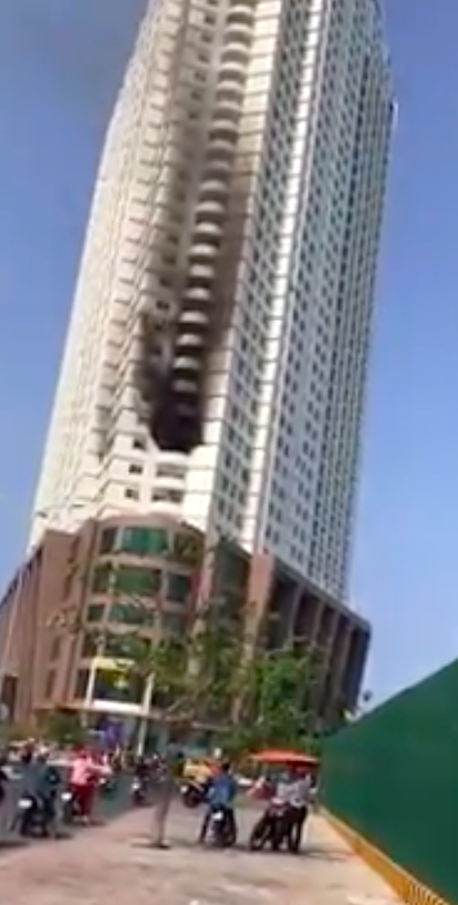 Cháy tầng 10 tòa nhà Mường Thanh - Ảnh: Cắt từ video bạn đọc.