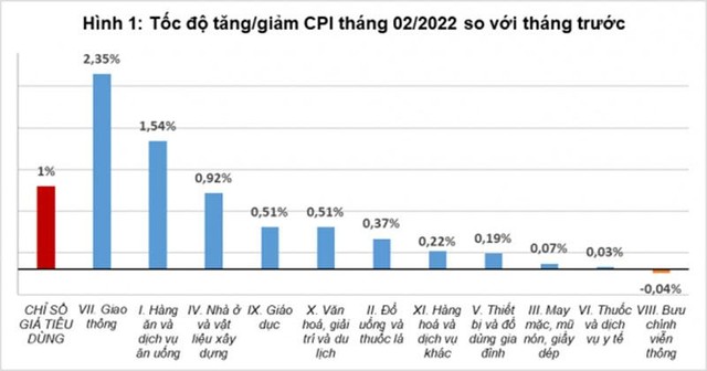 Đây là những nguyên nhân chính làm CPI tháng 2/2022 tăng 1% so với tháng trước; tăng 1,42% so với cùng kỳ năm trước và tăng 1,2% so với tháng 12/2021.