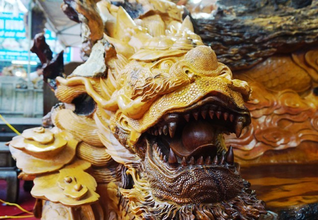 Bộ bàn ghế “tứ linh” được giới thiệu làm bằng gỗ trai nghìn năm tuổi chào bán với giá 2,8 tỷ đồng gây “náo loạn” Hội chợ công thương Bắc Trung Bộ. Tuy nhiên du khách chỉ đứng ngắm nghía trầm trồ chứ không dám bỏ ra gần 3 tỷ đồng để sở hữu bộ sản phẩm hoành tráng này.