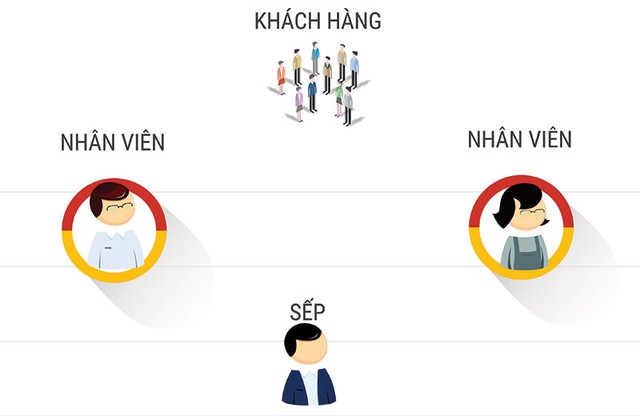 Sơ đồ cũ của các công ty là sếp - quản lý - nhân viên, nhưng ai mới là người tiếp xúc trực tiếp với khách hàng? Đó chính là những người ở nấc cuối cùng. Nếu cho rằng, khách hàng là trọng tâm thì doanh nghiệp hãy đảo ngược lại sơ đồ: khách hàng - nhân viên - sếp. Sếp sẽ thay đổi tư duy với một sơ đồ như vậy và thấy rằng, chúng ta cần cân bằng với những người ở trên. Sếp tốt là người coi trọng nhân viên hơn.