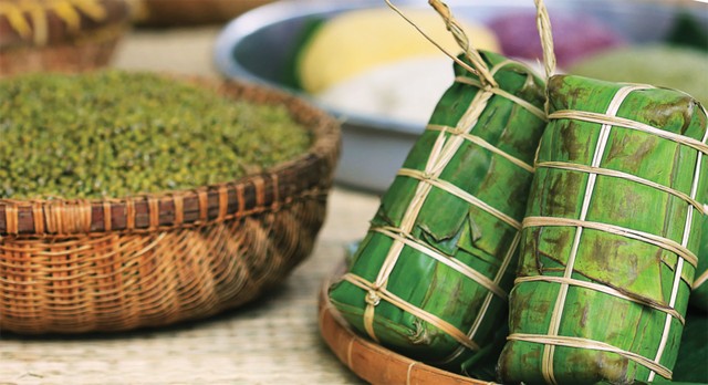 Năm nào cũng vậy, từ tối 28, 29, mẹ tôi đã ngâm sẵn mấy cân gạo nếp, đãi sẵn đỗ xanh, để sớm mai, khi mấy chị em tôi còn say ngủ là bà đã dậy đãi gạo, vớt lên cái rá tre to cho ráo nước, đun sẵn nồi nhân đậu xanh. Bố tôi thì sắp xếp lại mớ lá rong, cẩn thận cắt từng chiếc, xếp ngay ngắn để phân loại và gói bánh vuông, bánh dài.