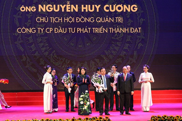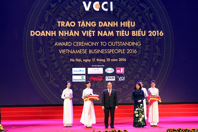 Tối 11/10, Thủ tướng Nguyễn Xuân Phúc chủ trì và trực tiếp trao tặng cúp Thánh Gióng cho các doanh nhân tại Lễ phát động phong trào thi đua “Doanh nghiệp Việt Nam hội nhập – Phát triển” và trao tặng danh hiệu Doanh nhân Việt Nam tiêu biểu 2016.