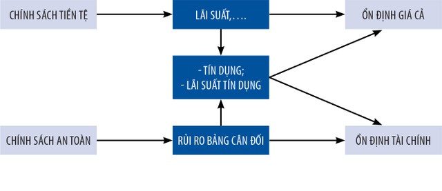Chính sách tiền tệ ảnh hưởng đến ổn định tài chính thông qua các kênh như tín dụng, bảng cân đối, hành vi chấp nhận rủi ro… Chính sách an toàn vĩ mô xác định và giải quyết những rủi ro mang tính chu kỳ và mang tính hệ thống trong khu vực tài chính. Nó có thể kiềm chế những ảnh hưởng không mong muốn của CSTT, góp phần giảm bớt gánh nặng của CSTT, đặc biệt trong môi trường chính sách sau khủng hoảng vừa qua.