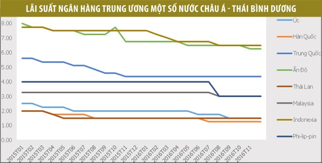 Chính sách tiền tệ của các nước khu vực châu Á - Thái Bình Dương năm 2016 tiếp tục xu hướng nới lỏng. Đi tiên phong là Ngân hàng Trung ương Indonesia với 6 lần giảm lãi suất liên tiếp tính đến tháng 11/2016 với tổng mức giảm 2,25%.