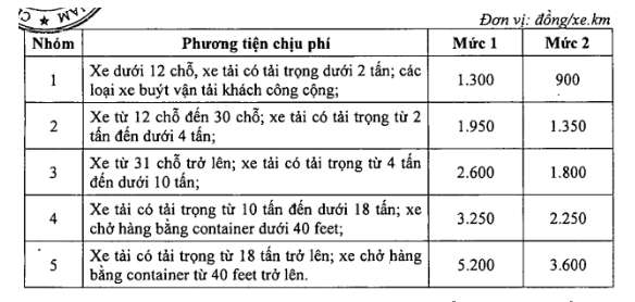 Đối tượng chịu phí sử dụng đường bộ cao tốc được phân thành 05 nhóm như sau: Nhóm 1 là các xe dưới 12 chỗ, xe tải có tải trọng dưới 2 tấn; các loại xe buýt vận tải khách công cộng;