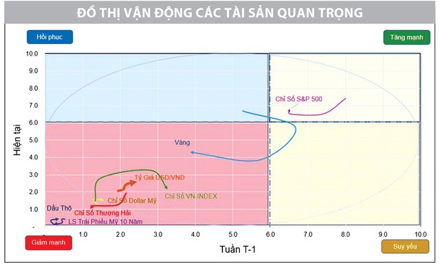 Trong khi đó, các chỉ số chứng khoán, tài sản khác vẫn chưa thoát khỏi vùng “Giảm mạnh” và động lực tăng ngắn hạn vẫn là những dấu hỏi lớn, từ chỉ số Shanghai Composite, VN-Index cho tới giá dầu.