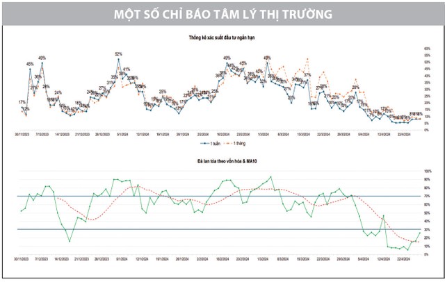 Về các chỉ báo định lượng, trong tuần qua, đặc biệt là phiên cuối tuần, đã có sự cải thiện, đà lan toả có xu hướng cắt lên MA10. Tuy vậy, thanh khoản, lực cầu chưa thực sự mạnh, cho thấy tâm lý nhà đầu tư vẫn còn thận trọng, e ngại thông tin bất lợi có thể xuất hiện trong kỳ nghỉ lễ. Vì vậy, chưa đủ cơ sở để khẳng định thị trường mở ra xu hướng mới.