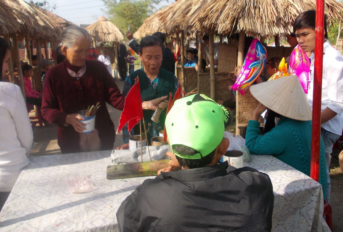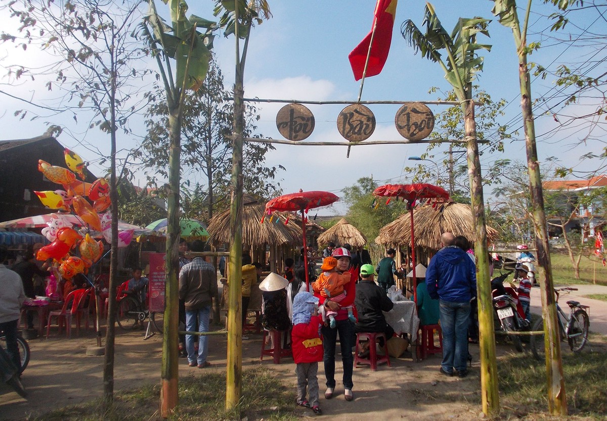Tuy nhiên, trong những ngày Tết, ngôi chợ này ngày càng đông vui, nhộn nhịp hơn. Mọi người, bất kể là ai, từ các cụ già, thanh niên, trẻ em trong làng, những làng lân cận và kể cả du khách phương xa đều tập trung bên cạnh những cái chòi tranh nhỏ nhắn. Họ đến đây không phải để mua bán, trao đổi sản vật, mà là để chơi bài chòi.