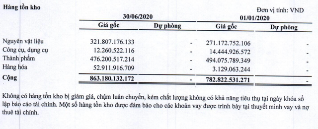 Bảng giá trị tồn kho tới 30/6/2020 của TDP