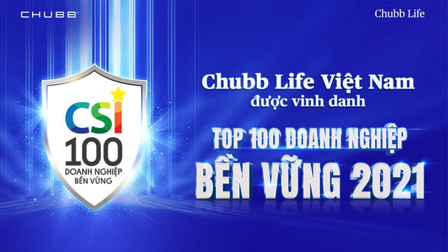 Với những thành tựu đã đạt được trong suốt những năm qua, mới đây Chubb Life Việt Nam tiếp tục được vinh danh trong Top 100 Doanh nghiệp bền vững 2021. Giải thưởng do Phòng Thương mại và Công nghiệp Việt Nam (VCCI) phối hợp với Bộ Lao động - Thương binh & Xã hội, Bộ Tài nguyên Môi trường và Tổng Liên đoàn Lao động tổ chức thường niên từ năm 2016.
