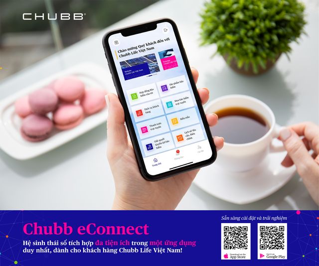 Ngày 05/04/2021, Chubb Life Việt Nam ra mắt ứng dụng Chubb eConnect, ứng dụng được xem như hệ sinh thái số tích hợp đầy đủ các tiện ích trực tuyến cùng nhiều tính năng hiện đại khác. Thông qua một ứng dụng duy nhất Chubb eConnect, khách hàng có thể quản lý thông tin về hợp đồng bảo hiểm cũng như thực hiện các giao dịch bảo hiểm trực tuyến 24/7 ở bất cứ đâu một cách nhanh chóng, an toàn.