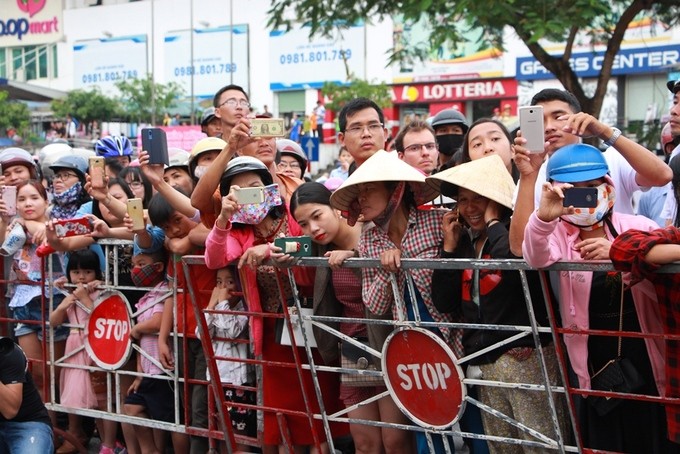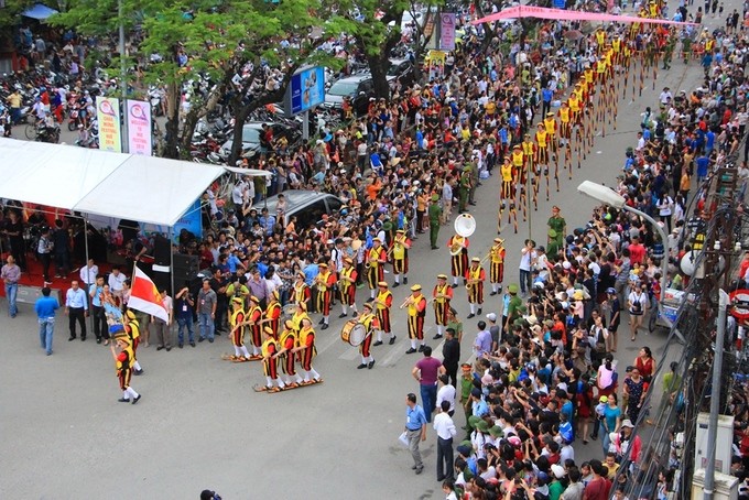 Đường Trần Hưng Đạo chật kín người dân và du khách xem lễ hội đường phố.