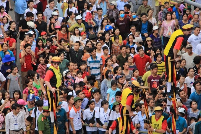 Đoàn cà kheo “De Steltenlopers van Merchtem” của Vương quốc Bỉ thu hút sự chú ý của người dân và du khách.