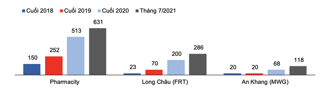 Bên cạnh đó, các chuỗi nhà thuốc đang phát triển nhanh, như Pharmacity, Long Châu và An Khang. Hiện thị phần của các chuỗi nhà thuốc còn nhỏ (Pharmacity và Long Châu chiếm tổng thị phần hơn 7% trong năm 2020) nhưng VCSC kỳ vọng thị phần các chuỗi này sẽ tăng mạnh trong các năm sau khi các chuỗi lớn đều có kế hoạch mở cửa hàng rất mạnh mẽ, cũng như người tiêu dùng quan tâm đến sức khỏe hơn và sẵn sàng trả giá cao hơn để có chất lượng phục vụ tốt hơn và an tâm về chất lượng thuốc.