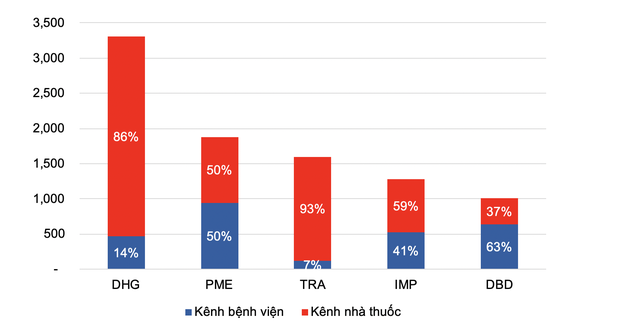 Nhìn chung, DHG và TRA tập trung vào kênh nhà thuốc với thế mạnh của DHG là tân dược không kê đơn, trong khi TRA có thế mạnh là doanh nghiệp dẫn đầu trong mảng thuốc Đông dược. Trong khi đó, PME, IMP và DBD tập trung vào kênh bệnh viện với thế mạnh là các loại kháng sinh uống, tiêm, đặc biệt DBD là doanh nghiệp nội địa dẫn đầu về thuốc điều trị ung thư.