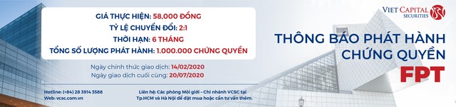 CW FPT do VCSC phát hành có giá thực hiện 58.000 đồng/cp, tỷ lệ chuyển đổi 2:1