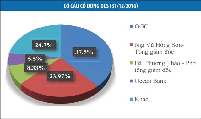Thông tin từ OCS cho biết, tính đến 31/12/2016, số lượng tài khoản giao dịch chứng khoán của nhà đầu tư tại Công ty là 7.050 tài khoản. Lượng tài khoản mở mới trong năm 2016 là 378, bình quân mỗi ngày có 1,03 tài khoản mở mới, giảm mạnh so với mức 5,23 tài khoản/ngày trong năm 2014 và 1,57 tài khoản/ngày năm 2015. Đội ngũ nhân sự của Công ty giảm từ 111 người cuối năm 2014 xuống 91 người cuối năm 2015 và 65 người vào cuối năm 2016.