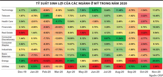 Trên thế giới, 2020 là năm của những cổ phiếu “làm việc ở nhà”, như nhóm công nghệ của Mỹ, nhóm cổ phiếu y dược, xét nghiệm y tế và vệ sinh dịch tễ. Những cổ phiếu mà tháng 1/2020 còn xa lạ với nhiều người như Zoom đã nhanh chóng đạt mức vốn hóa cao hơn hầu hết các hãng hàng không có Mỹ. Nhiều công ty công nghệ vô danh đạt mức tăng doanh thu 80 - 160% và giá cổ phiếu tăng 2-3 lần.