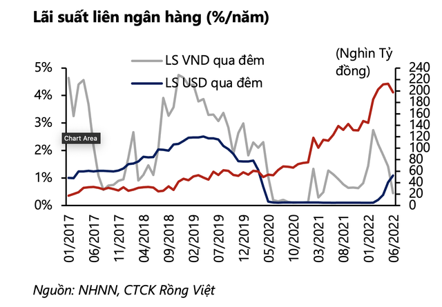 Các chuyên gia của VDSC dự báo: "Trong kịch bản cơ sở, chúng tôi kỳ vọng việc nâng lãi suất điều hành có thể được thực hiện vào đầu năm 2023 với mức tăng 50 điểm cơ bản. Ở kịch bản thận trọng hơn, chúng tôi cho rằng việc điều chỉnh lãi suất điều hành có thể đến sớm hơn (quý IV/2022), nếu giá dầu tăng mạnh lên mức trên 130 USD/thùng và duy trì đủ lâu ở vùng này khiến lạm phát tăng nhanh hơn dự báo".