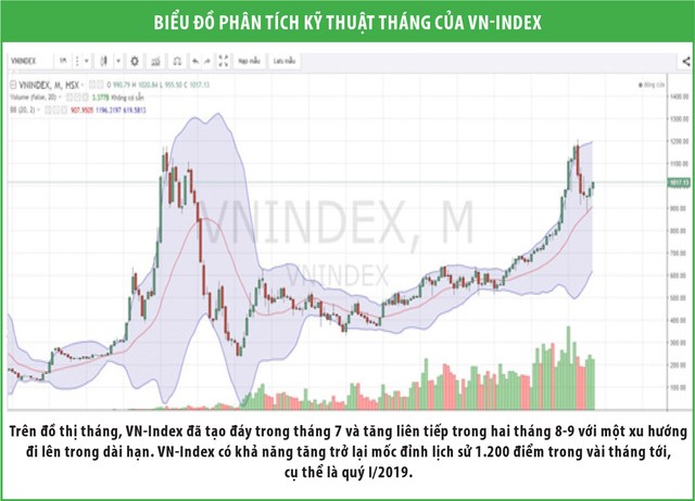 Tháng 10, với tình hình vĩ mô dự báo tiếp tục ổn định, sự quyết tâm của Chính phủ trong việc hoàn thiện thị trường chứng khoán để được nâng hạng từ cận biên lên mới nổi, cũng là thời điểm các doanh nghiệp niêm yết công bố kết quả kinh doanh quý III/2018, kỳ vọng các yếu tố này sẽ hỗ trợ VN-Index bứt phá lên vùng 1100 điểm.