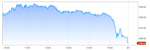 Diễn biến Kospi Index phiên giao dịch 28/2. Ảnh: CNBC