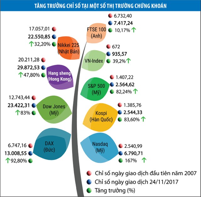 Trong đánh giá của Chủ tịch Ủy ban Chứng khoán Nhà nước (UBCK) Trần Văn Dũng, cái gốc của tăng trưởng mạnh trên TTCK Việt Nam thời gian qua là sự khởi sắc của nhiều nền kinh tế cũng như TTCK toàn cầu. Trong khi đó, nền kinh tế Việt Nam cũng nhận được nhiều dự báo, đánh giá tích cực của các tổ chức quốc tế. Không có một tổ chức nào cho rằng, kinh tế Việt Nam sẽ tăng trưởng dưới 6% trong năm 2017 và các năm tới.