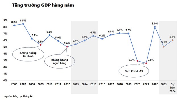 Các chỉ tiêu cho thấy chính sách vĩ mô, nói chung, sẽ tiếp tục ưu tiên mục tiêu tăng trưởng với GDP 6%-6,5%; lạm phát bình quân 4%-4,5%, tăng trưởng tín dụng 15% trong năm 2024. Vì vậy, tôi kỳ vọng thời gian phục hồi nền kinh tế Việt Nam về mức bình thường sẽ ngắn hơn so với các giai đoạn khủng hoảng trước đây. Và sẽ không có nhiều thay đổi so với năm 2023, khi chính sách tiền tệ nới lỏng và tài khóa mở rộng thông qua thúc đẩy đầu tư công hỗ trợ doanh nghiệp (DN) sẽ tiếp tục duy trì.