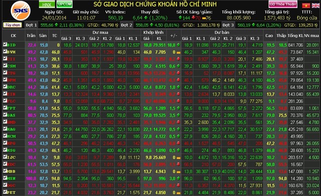 Bảng giá trực tuyến của HOSE vẫn chạy sáng nay (thứ Bảy, ngày 25/1)