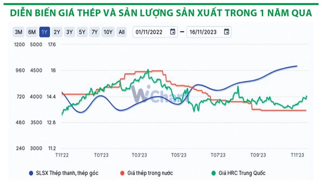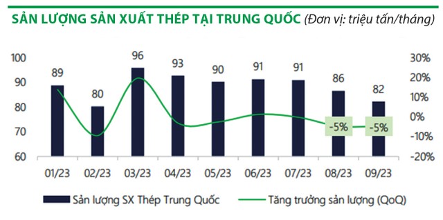 Thực tế, với áp lực từ lợi nhuận sụt giảm, kể từ tháng 7/2023, các nhà sản xuất thép Trung Quốc bắt đầu cắt giảm khoảng 10% sản lượng sản xuất hàng tháng. Thêm vào đó, do những dự báo về ô nhiễm khí thải tăng cao, vào ngày 26/10, chính quyền tỉnh Đường Sơn và Hàm Đan, 2 tỉnh sản xuất thép lớn của Trung Quốc, đã ban hành lệnh “ứng phó khẩn cấp độ 2” và yêu cầu các nhà máy sản xuất thép phải giảm sản lượng sản xuất.