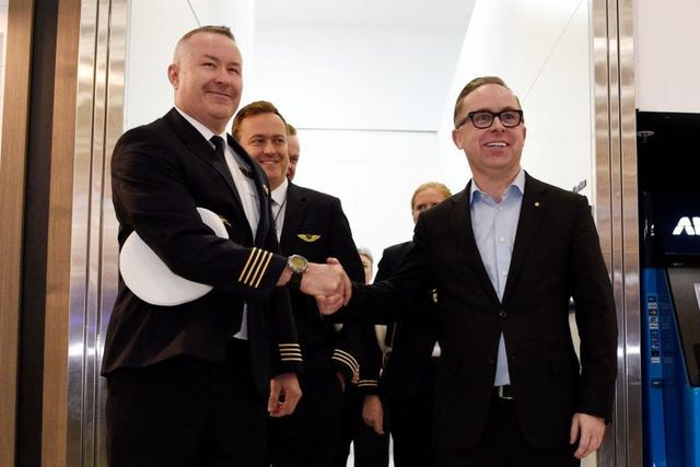 Cơ trưởng Sean Golding (trái) và giám đốc điều hành Qantas Alan Joyce (Ảnh: EPA-EPE).