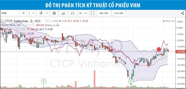Cổ phiếu VHM tạo đáy tại 63.000 đồng/cổ phiếu và tăng liên tục trong hơn 1 tháng sau đó, lên mốc 82.000 đồng/cổ phiếu. Cuối tuần qua, cổ phiếu này giảm giá, đầu tuần này đứng giá. Diễn biến giá trong các phiên tới có thể kém khả quan.