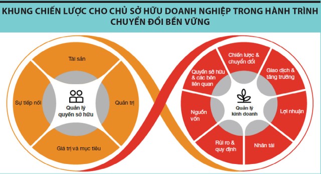 Quá trình chuyển đổi ESG phải gắn liền với chiến lược, mục tiêu, tầm nhìn và giá trị dài hạn của gia đình, đảm bảo phát triển bền vững và thành công lâu dài. Doanh nghiệp cần xây dựng khung quản lý rủi ro tích hợp với phát triển bền vững và các giá trị cốt lõi, cũng như chiến lược quản lý thay đổi để giảm thiểu rủi ro tiềm ẩn, tăng khả năng thích nghi với nhiều luật định về phát triển bền vững được ban hành trong nước như giảm phát thải khí nhà kính, kinh tế tuần hoàn và công bố thông tin trên thị trường chứng khoán, hoặc luật định quốc tế như thuế carbon và công bố thông tin phát triển bền vững.