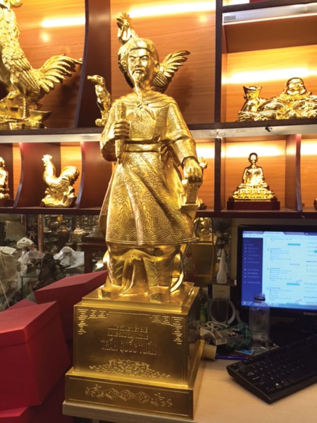 Đặt bức tượng đồng Hưng Đạo đại vương Trần Quốc Tuấn xuống bàn, người đàn ông trạc 50 tuổi móc trong ví ra đếm 80 tờ mệnh giá 500.000 đồng đưa cho Hùng: “Ghi phiếu thu đi, anh đặt trước 40 triệu, còn đâu hoàn thành xong giao đến nhà rồi anh thanh toán hết. Nhớ dát vàng chuẩn sẽ có thưởng”.
