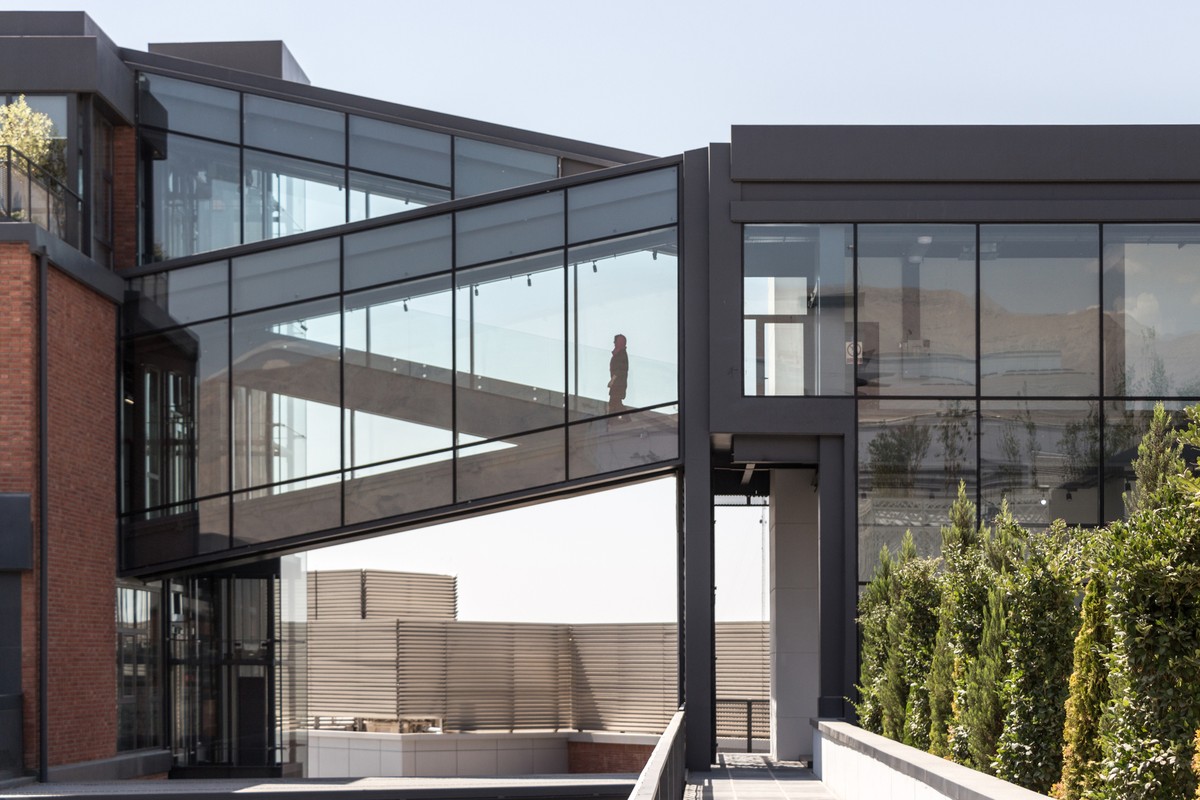 Một là toà nhà gạch nung mang sắc màu ấm cúng, dễ chịu, tạo không gian rộng mở, thân thiện cho hoạt động hành chính, văn phòng; toà nhà còn lại là khu vực sản xuất với sắc trắng đơn giản mà sắc lạnh, hiện đại. 2 toà nhà được kết nối với nhau bằng nhiều cầu thang riêng biệt ở những hướng khác nhau của mỗi công trình.