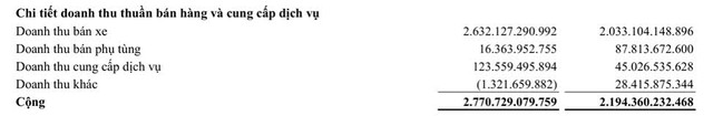 Tổng doanh thu thuần từ bán hàng và cung cấp dịch vụ năm 2024 đạt 2.770 tỷ đồng, tăng 26% so với mức 2.194 tỷ đồng của năm 2023. Kết quả này phản ánh sự chuyển dịch chiến lược của công ty, tập trung vào việc phát triển hệ sinh thái giá trị gia tăng xoay quanh hoạt động kinh doanh cốt lõi là thương mại ô tô thuần tuý.