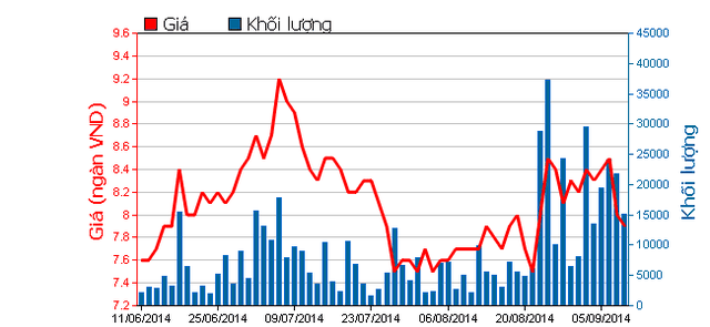 Biểu đồ giá, khối lượng giao dịch của cổ phiếu CLG trong 1 tháng qua. Nguồn: HOSE
