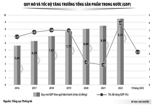 Về hạn chế, Chính phủ nhìn nhận, cơ cấu kinh tế và mô hình tăng trưởng chưa có nhiều thay đổi đáng kể. Mức độ cải thiện về năng suất, chất lượng chưa đạt như kỳ vọng, khả năng chống chịu của nền kinh tế còn hạn chế. Tốc độ tăng năng suất lao động trung bình 2021-2022 là 4,7%, năm 2023 ước tăng 4%, thấp hơn khá nhiều so với tốc độ tăng năng suất lao động trung bình giai đoạn 2016-2020 (5,9%). Tỷ trọng công nghiệp chế biến - chế tạo trong GDP tăng chậm, năm 2021 là 24,3%, năm 2022 là 24,7%.