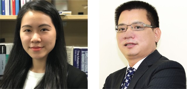 Luật sư Lương Văn Trung (phải) và trợ lý pháp luật Trần Thị Anh Thơ (trái).