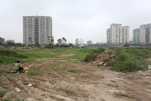 Khu vực dự kiến xây dựng nhà tái định cư cho cư dân tại chỗ nằm trong khu đô thị Thịnh Liệt hiện vẫn đang là bãi đất hoang cỏ mọc quá đầu