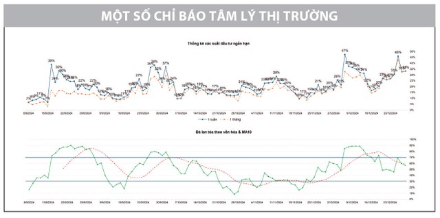 Dựa trên các chỉ báo định lượng, hiện tượng trên là bình thường do hệ quả của áp lực chốt lời ngắn hạn cũng như sự mở rộng đà tăng nhanh trên toàn thị trường dẫn tới điểm mua mới bị hạn chế trong khi thanh khoản chưa tăng mạnh đồng thuận. Theo đó, khi dòng tiền bị co kéo, sự phân hóa và dịch chuyển giữa các nhóm cổ phiếu sẽ tiếp tục mạnh hơn trong tuần tới, các vị thế mua mới cần siết chặt hơn với các quyết định mở vị thế mới nếu không đảm bảo yếu tố nền giá chặt chẽ và dư địa tăng đủ hấp dẫn.