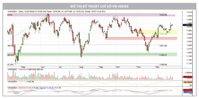 VN-Index đã hoàn thành tuần giao dịch cuối cùng của năm 2024 với khá nhiều tín hiệu tích cực. Với tuần tăng điểm này, tín hiệu suy yếu trong 2 tuần trước đã được cân bằng ngay tại vùng hỗ trợ quan trọng tại 1.250 - 1260 điểm; đồng thời, tạo nền tảng tốt cho những kỳ vọng hướng tới vùng 1.300 điểm trong thời gian tới.