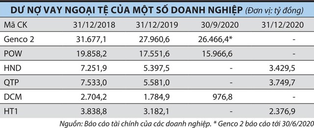 Theo báo cáo tài chính quý III/2020 của POW, trong tổng số nợ vay dài hạn 10.754,5 tỷ đồng có 6.410,8 tỷ đồng vay nợ bằng USD, 521,2 tỷ đồng vay nợ bằng Euro và 3.822,5 tỷ đồng vay nợ bằng VND.