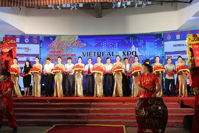 Các đại biểu cắt băng chính thức khai mạc Vietreal Expo 2017 trong sáng 2/6 tại Cung Triển lãm Kiến trúc Quy hoạch Xây dựng Quốc gia